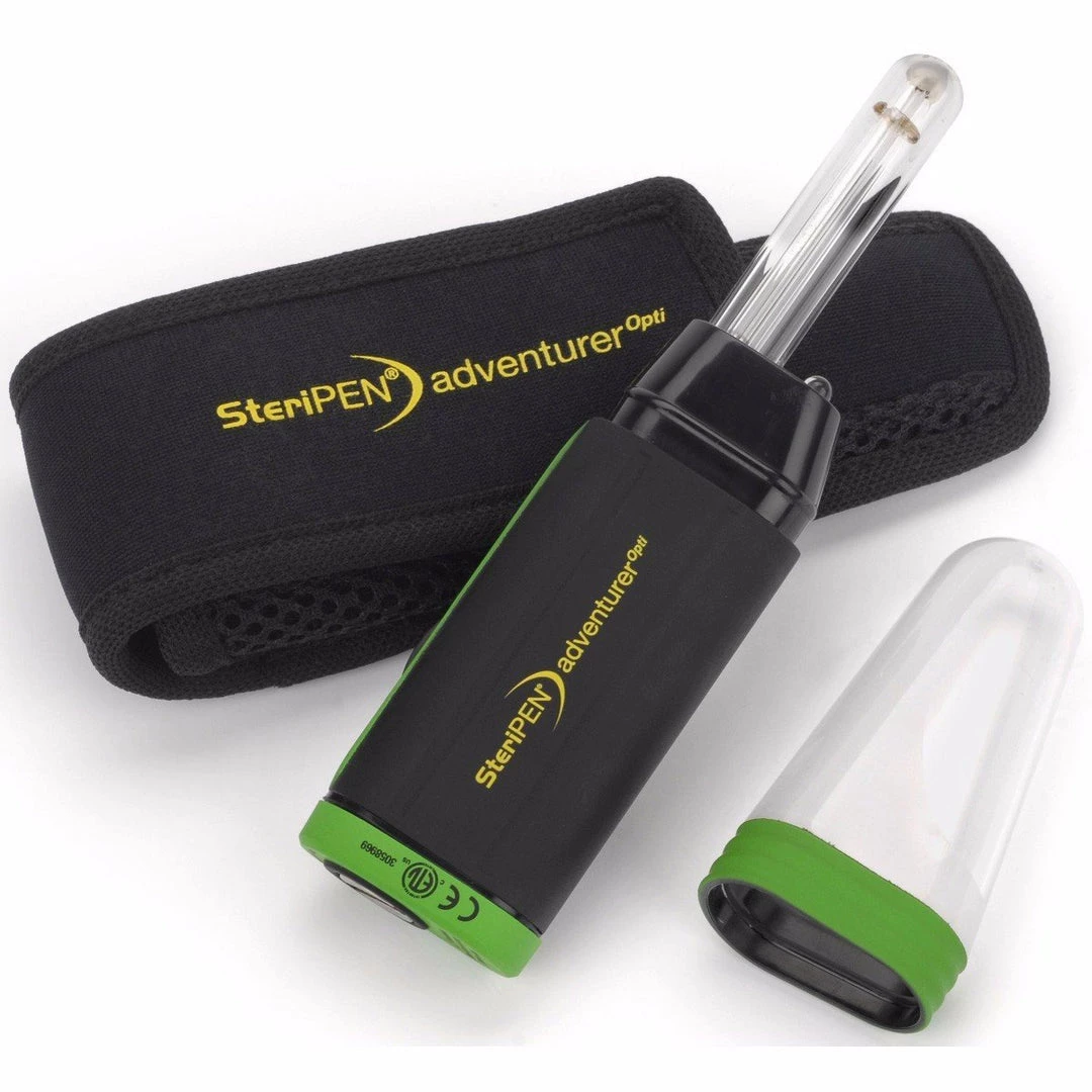 Rugged design and construction trusted by thousands of endurance athletes. Adventurer Opti is powered by two CR123 batteries making it a lightweight water purification system and keeping it operating effectively in even cold environments. The long-lasting UV lamp provides purifies up to 8,000 liters! Works in containers with a minimum 1.75 inch diameter opening. (Like Nalgene wide-mouth bottles one liter bottles.)