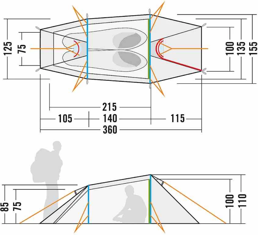 It‘s amazingly light thanks to the tapered rear tent frame construction and the use of nylon 6.6 ripstop with 5 layers of silicone coating for the outer tent.