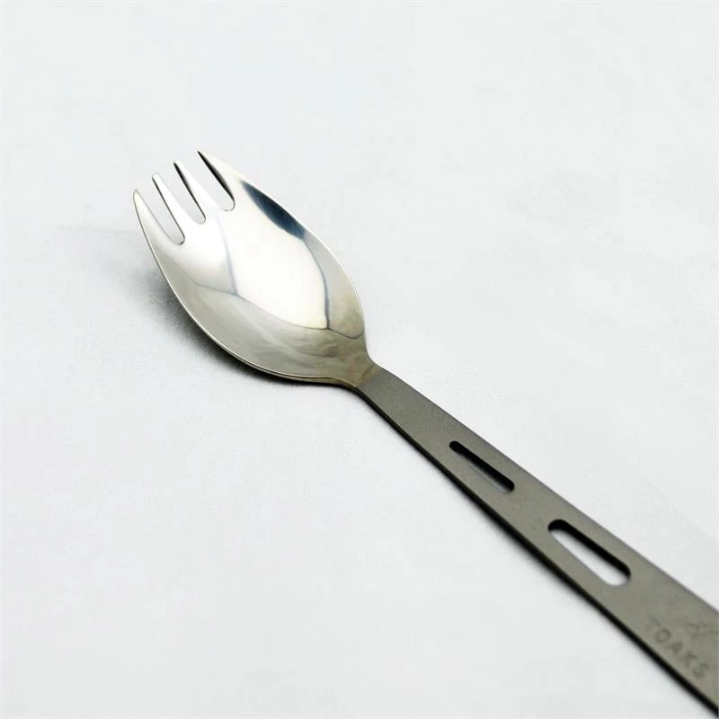 Ultralight titanium spork with matte finish handle. Polish head gives a fine touch.