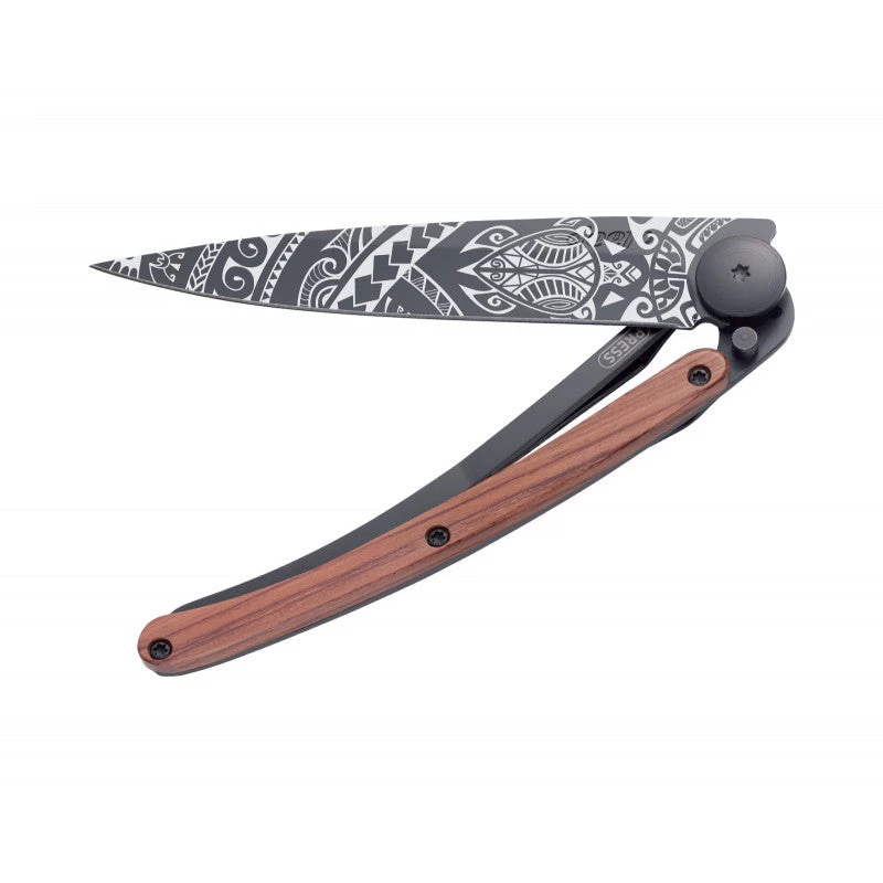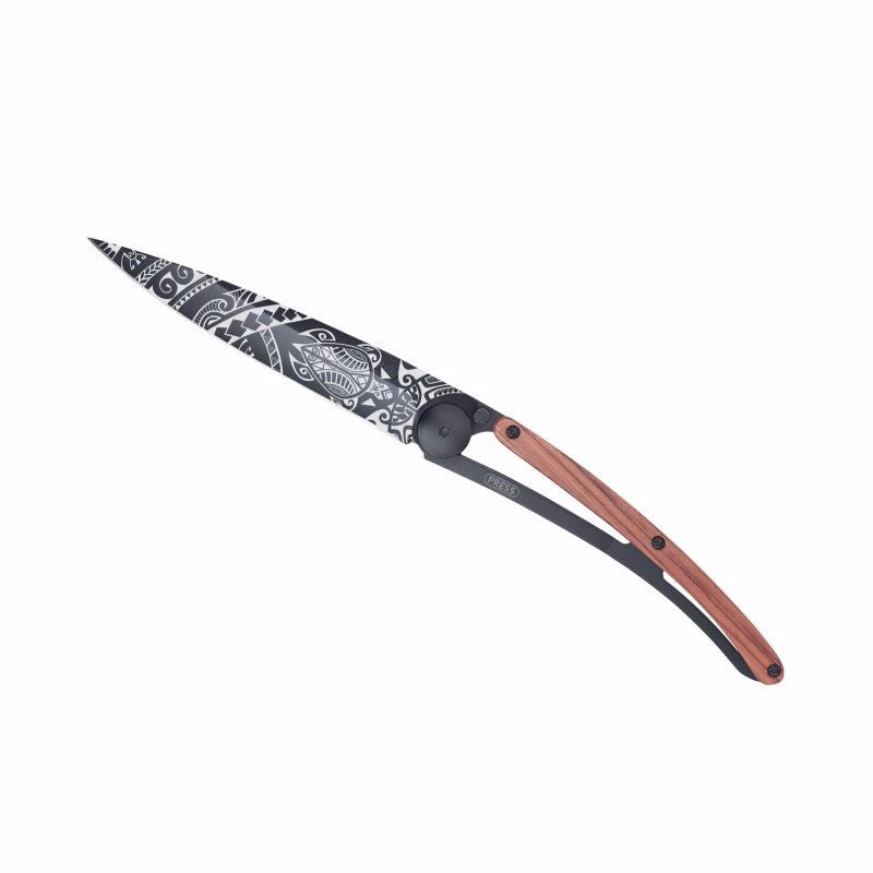 An original interpretation of the cradle of the tattoo reviewed and revised by Deejo. Will you know how to read all the patterns that compose it? A gift for the eyes that will be appreciated every day. Coral wood (or Padauk) is an abundant wood traditionally used in cutlery for its exquisite red and amber highlights (the reason for its name), its robustness, and its exceptional resistance to humidity. Coral wood exquisitely highlights the elegance of a Deejo knife.