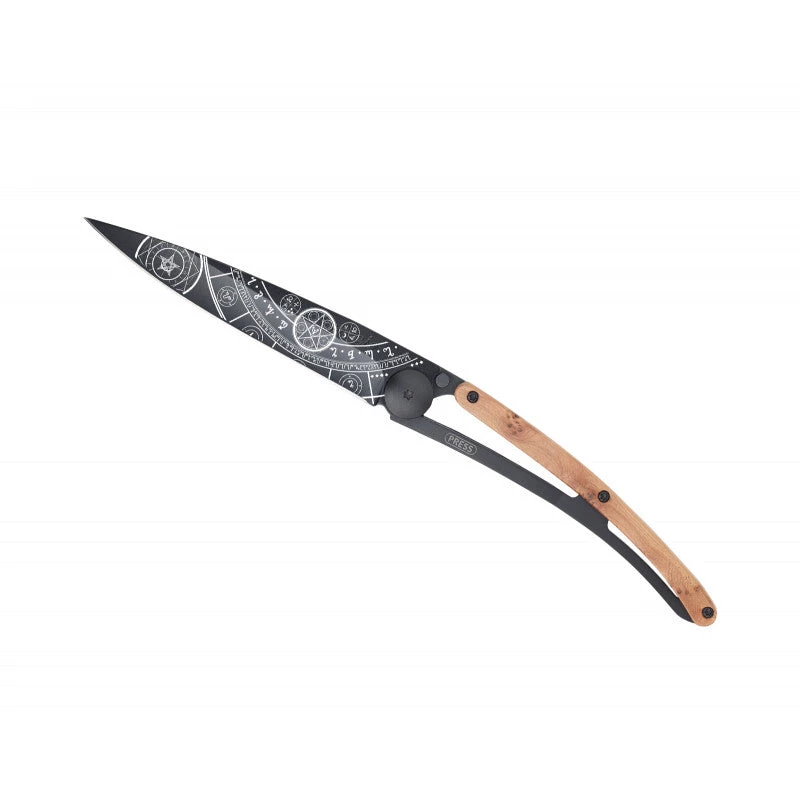 Welcome to the secret community of Deejo. Juniper is a naturally fragrant wood with a light, peppery smell. Carved into arabesques in shades of grey, each delicately veined handle makes your Deejo a preciously unique piece.