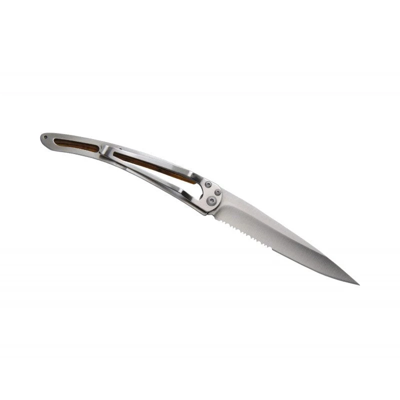 A formidable Deejo that can be handled single-handedly without loss of finesse or elegance. Juniper is a naturally fragrant wood with a light, peppery smell. Carved into arabesques in shades of grey, each delicately veined handle makes your Deejo a preciously unique piece.