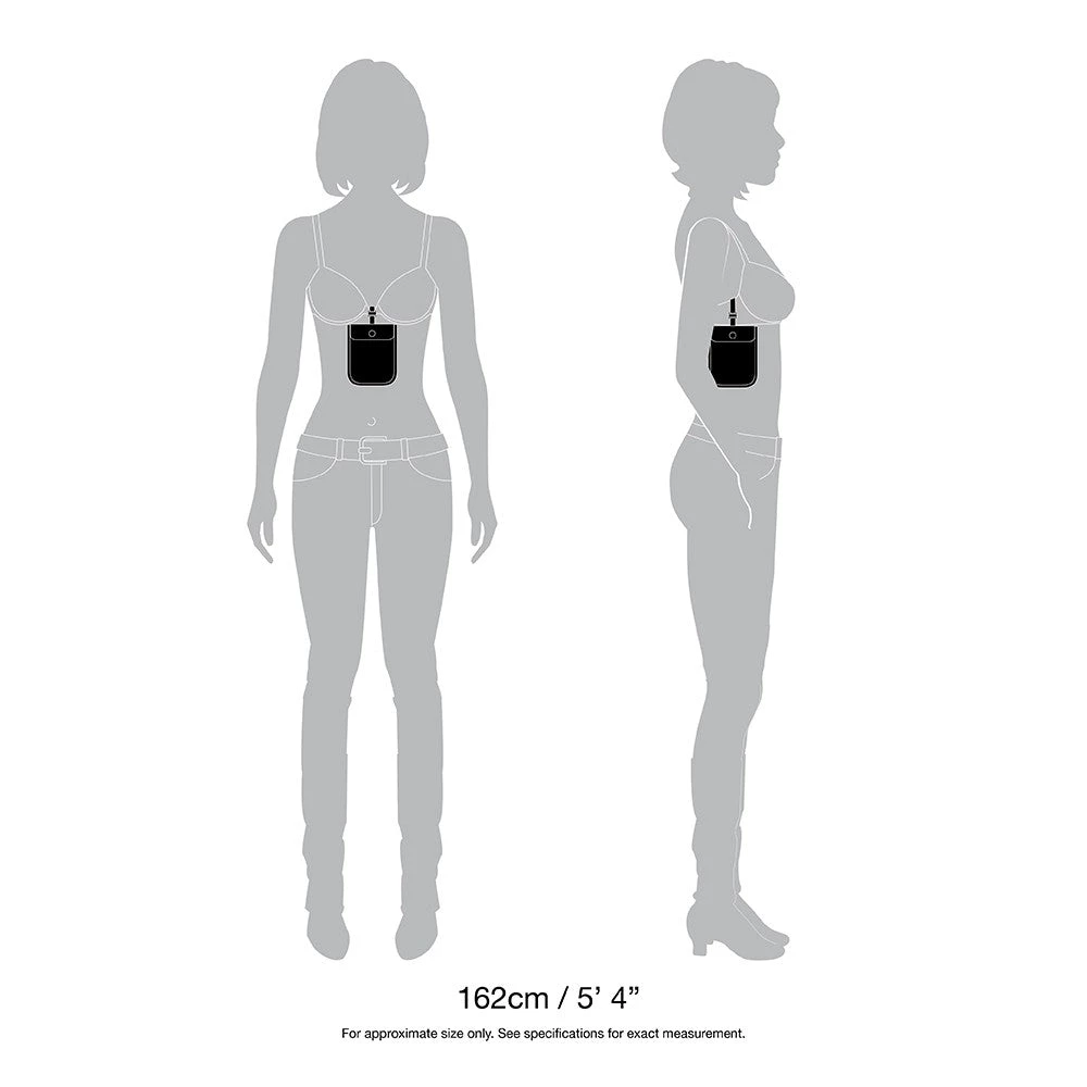 This handy little pouch clips and sits comfortably onto the front or side of most bras. Its unique fabric is exceptionally soft to the touch and the snap button closure allows easy access to essentials, when you need them.