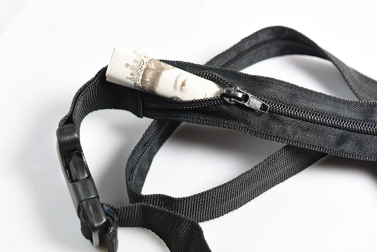 This discreet Trekmates Cairo Travel belt replaces your belt and has a small enough zip pocket on the reverse to keep emergency bank notes etc secreted away.