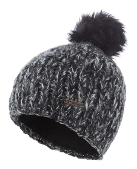 The Trekmates Moya is a multi-toned ribbed hat with a polyester half-fleece lining and faux fur pom-pom.