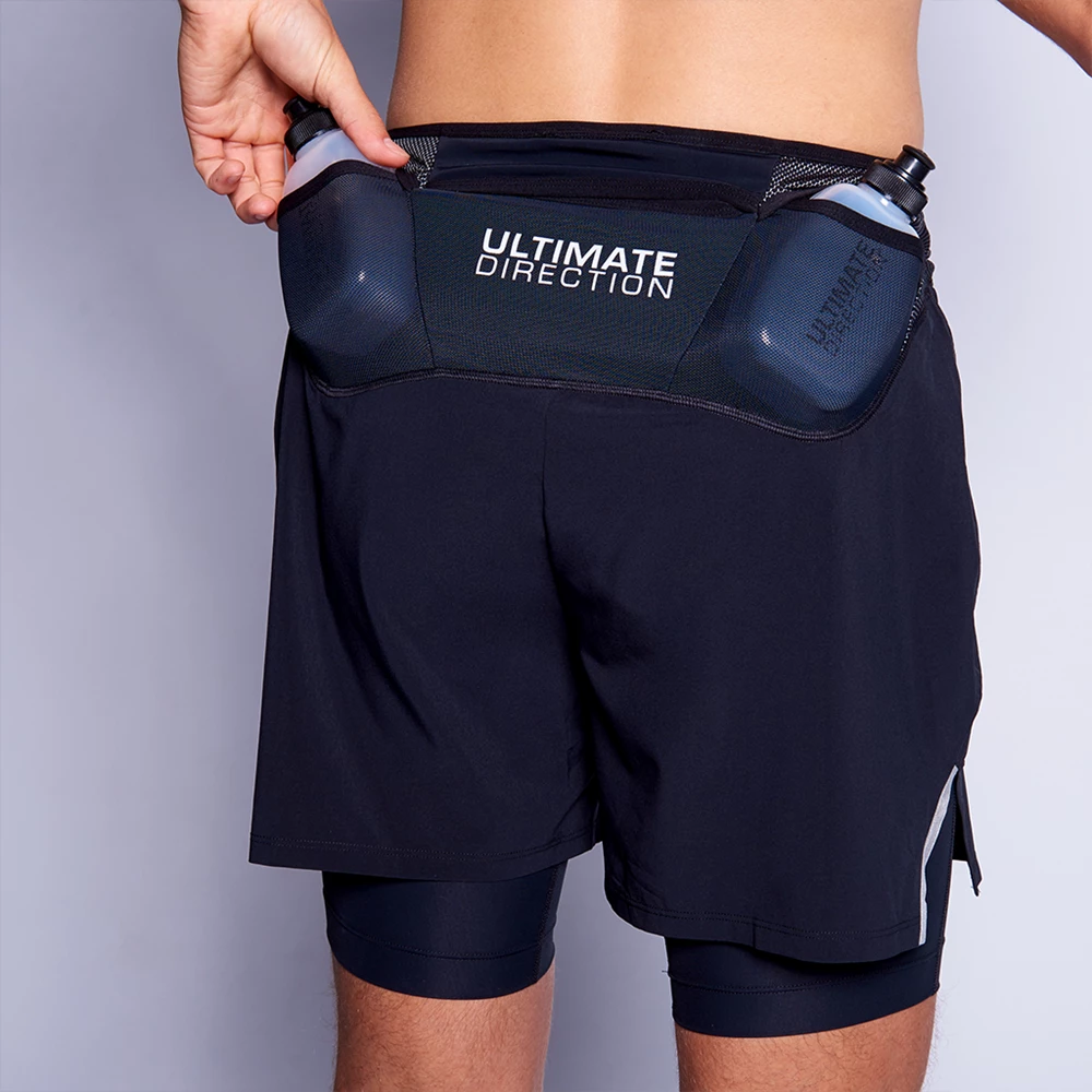 No belt, vest or handheld needed; the Hydro Short carries two bottles securely, plus a pocket for other items as big as an iPhone 8+.