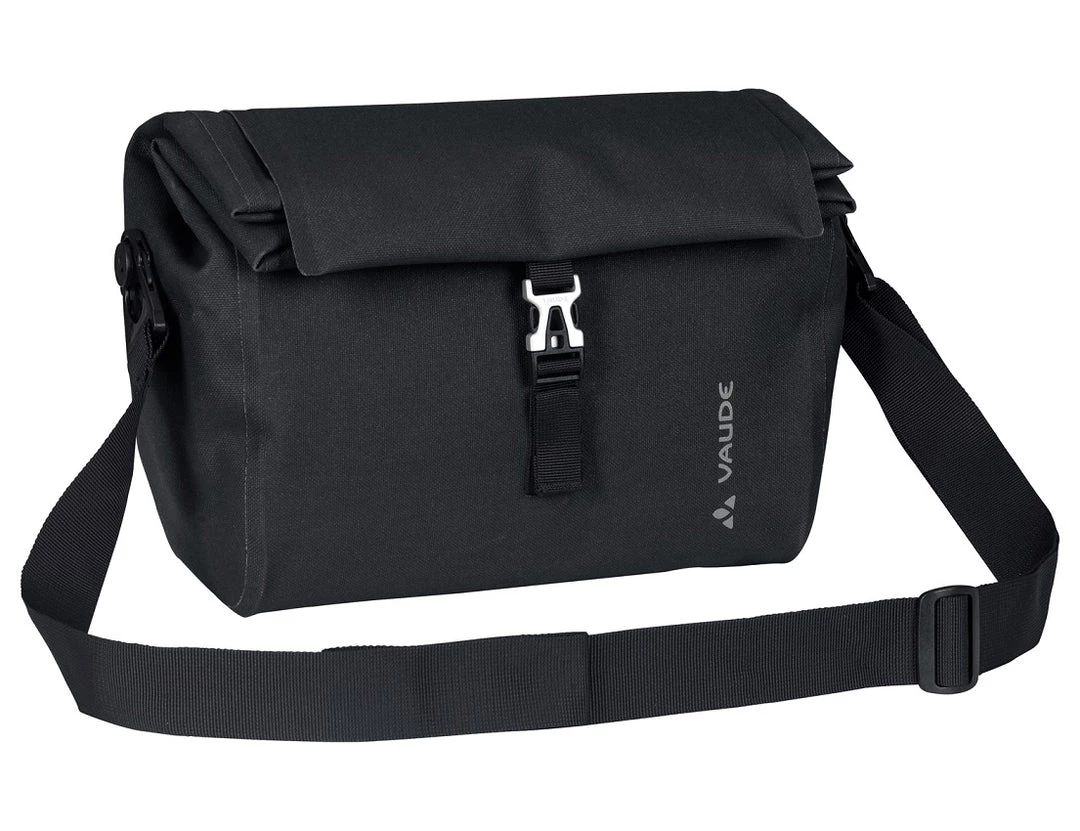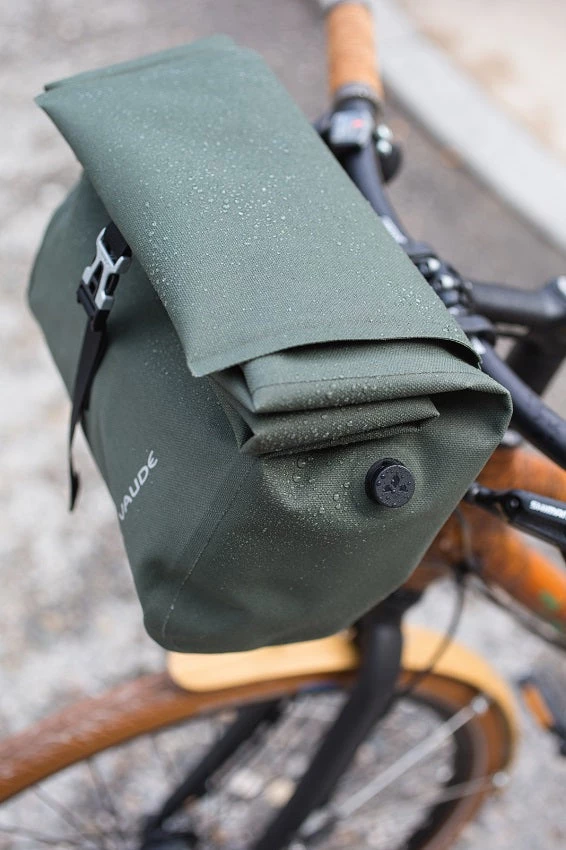 This great urban handlebar bag with roll closure and bamboo handle is climate neutrally manufactured in the South German VAUDE company headquarters near Lake Constance.