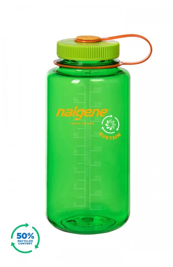 Welcome to the first 1 litre Wide Mouth Nalgene Bottle made with 50% recycled content.