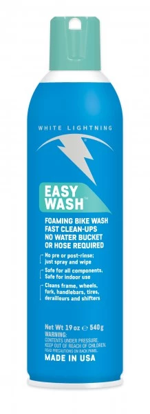 Easy Washâ„¢ is a foaming bike cleaner that works without pre-rinsing. It is formulated to safely remove road and trail grime, nutrition residue, oil splatters, rim glaze, and perspiration stains.