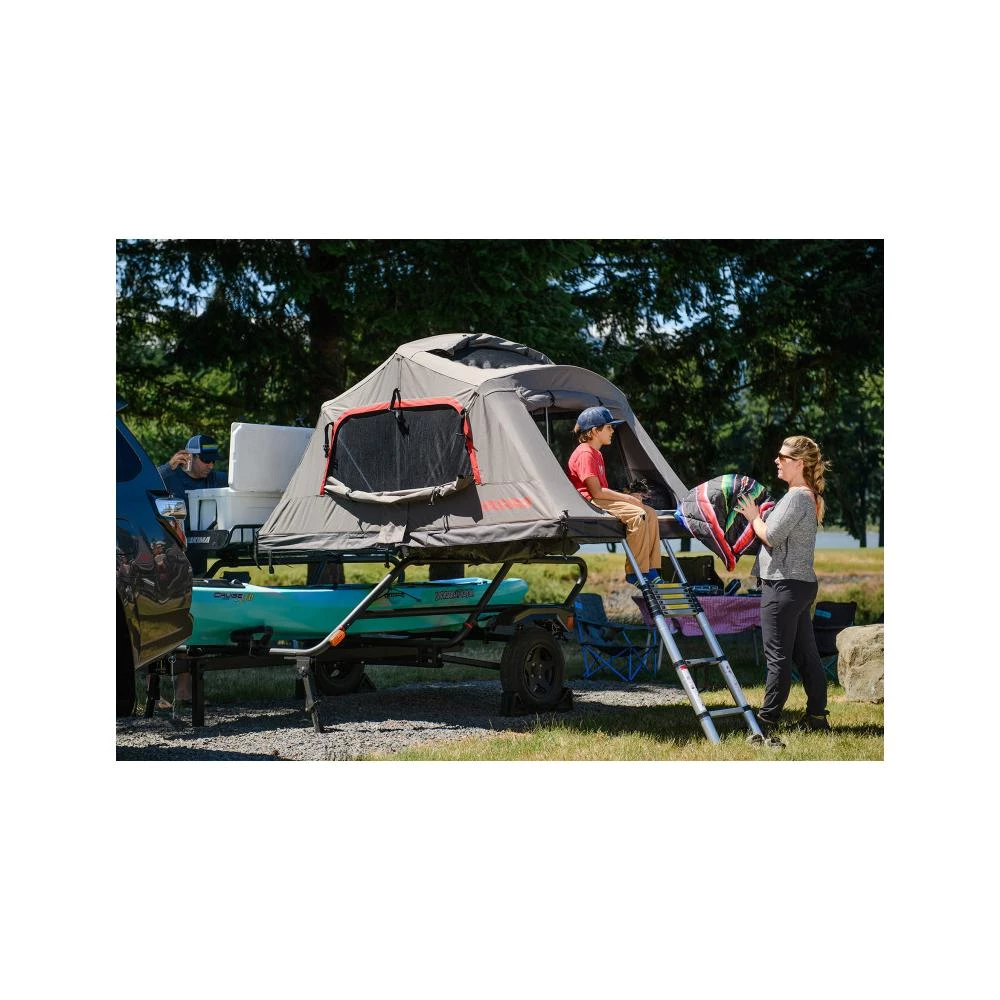 This exciting addition to our family is your hub for the ultimate mobile base camp in any season. The SkyRise HD tent body is ruggedly constructed with 600 D Ripstop polyester fabric and a 3000 mm waterproof PU coating. Paired with the weather-shedding waterproof rainfly, you’re set for complete protection against the elements. The extra large windows and doors provide grand views and great ventilation, while the thick wall-to-wall foam sleeping pad provides cushy, all-night comfort.