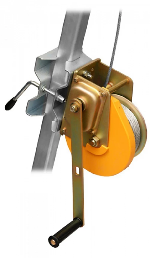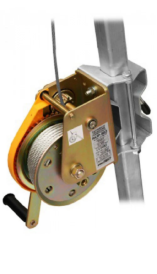 Lifting and lowering device with automatic braking, ideal for confined space work and rescue.
