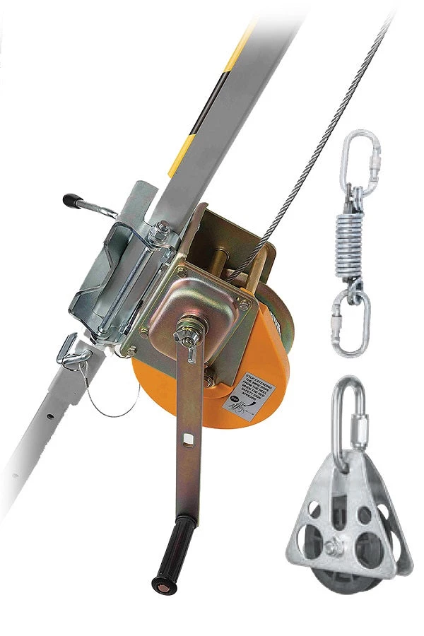 Includes mounting bracket, PL-101 Pulley and fall arrest spring shock absorbing device.